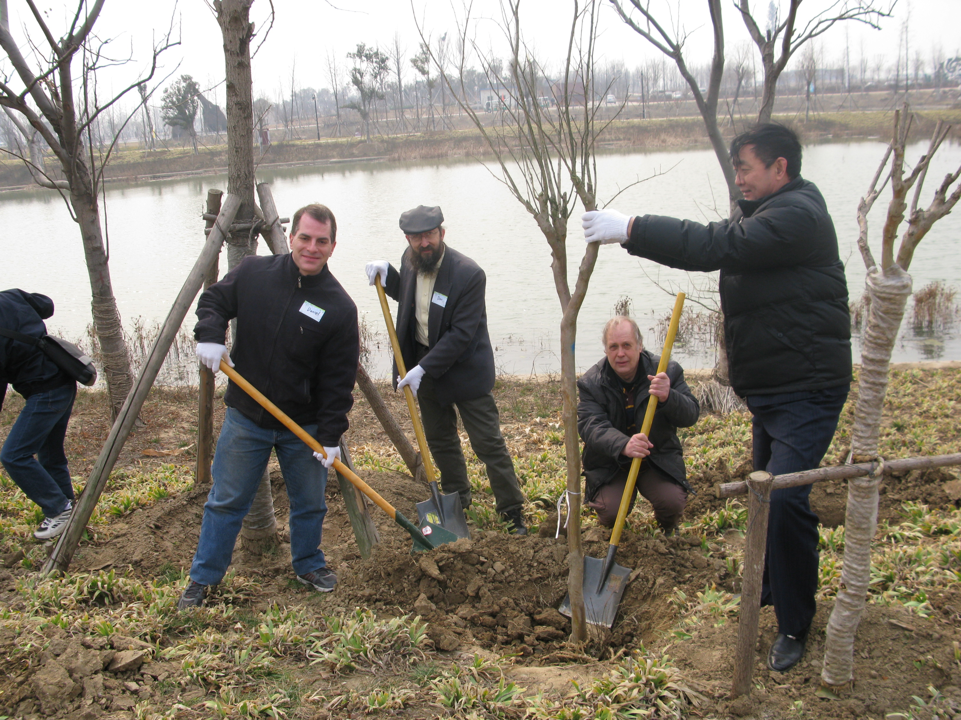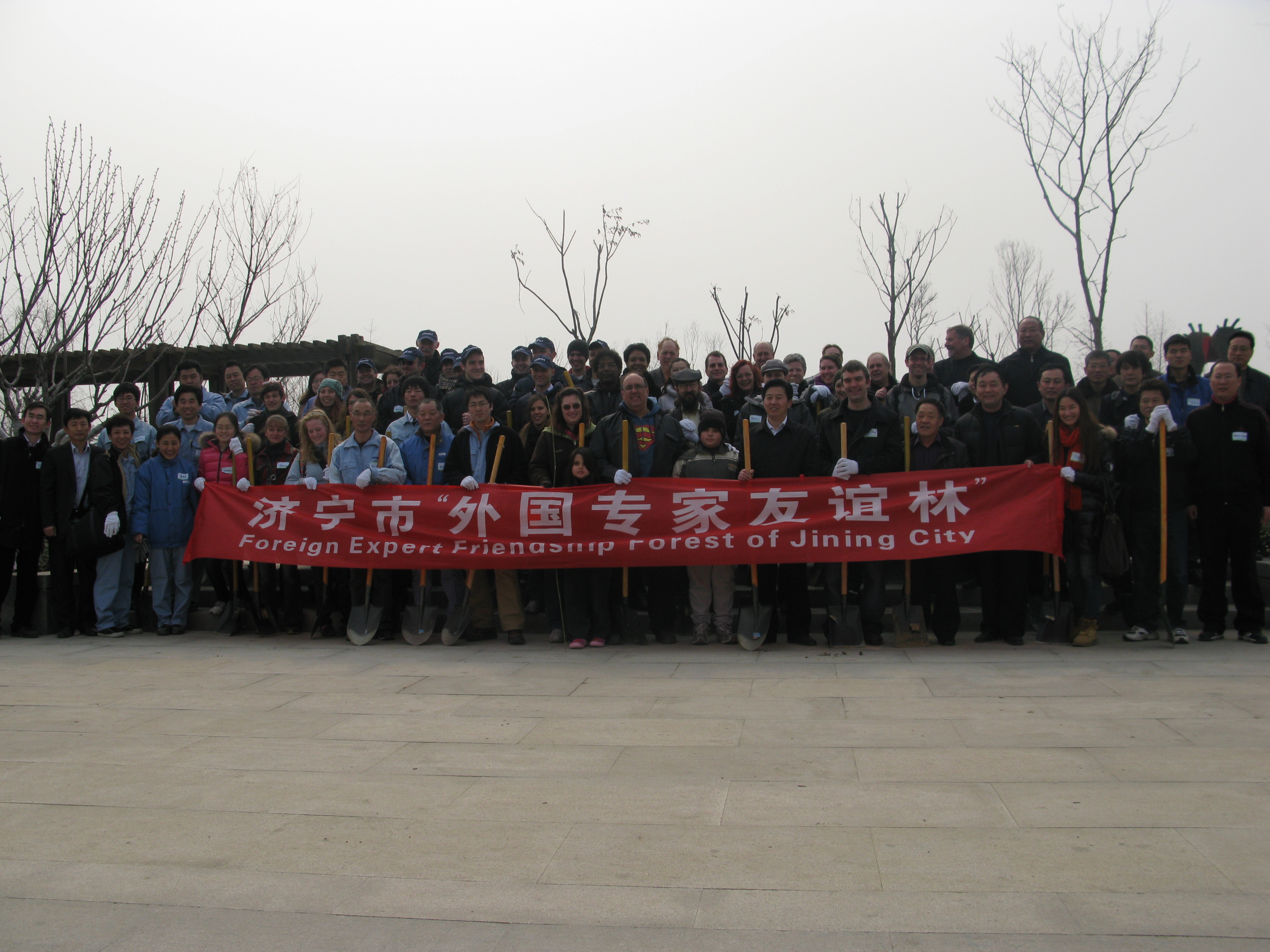 3月12日上午,我校三名外籍教师在外事工作人员陪同下,前往济宁市北湖新区参加了由市人力资源和社会保障局组织的“外国专家友谊林”植树活动。