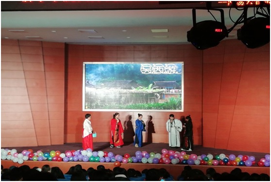为了迎接我国改革开放四十周年,2018年12月21日晚6:30,由国际交流合作处主办、国际交流协会承办的协会成立三周年庆典晚会在理科楼报告厅隆重举行。晚会共有14个节目组成,有歌曲、小品、相声、朗诵、舞蹈等,类型丰富,精彩纷呈。我校外籍教师peter先生为观众演唱了英文流行歌曲《say you again》,引起了全体观众的热烈掌声,最后晚会在国际交流协会所有成员的大合唱《仰望星空》下落下了帷幕。此次活动,座无虚席,气氛热烈,不仅仅是为了庆祝国际交流协会成立三周年,更是为了热烈祝贺我国改革开放四十周年。活动的成功举行增进了协会成员的向心力、凝聚力,锻炼了他们的实践能力和组织能力。国际交流合作处的工作人员、外籍教师以及学生社团负责人及学生等共计500多人参加了此次周年庆晚会。