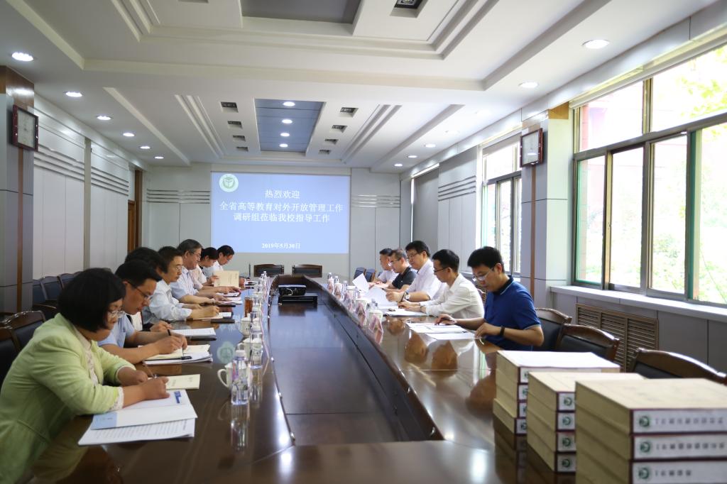 5月30日下午,全省高等教育对外开放管理工作调研组来学校调研。党委副书记、院长吕灵昌接见了调研组一行,党委委员、副院长刘德胜就学校的对外开放管理工作与调研组进行了深入交流。宣传部、教务处、人事处、保卫处及国际交流合作处等部门负责人和相关人员参加了座谈会。
