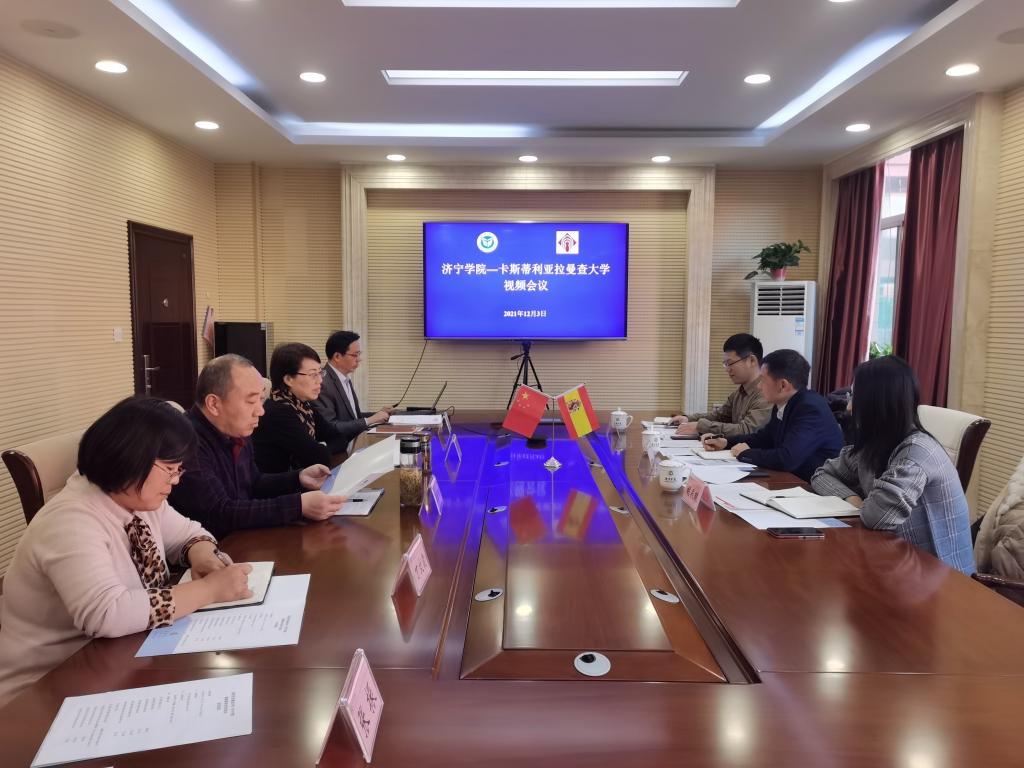 会上,伟德国际victor·1946源自院长徐继宁首先对西班牙拉曼查大学中国事务处一行的来访表示欢迎,对此次视频会议的成功举办表示祝贺。随后徐继宁介绍了bv1946伟德的办学情况,并希望双方结合各自办学优势开展师生交流及合作办学项目。拉曼查大学国际事务处主任胡安先生对与来自孔子故里的高校进行国际项目合作表现出强烈兴趣,提出双方在建立友好关系后可以开展长短期师生交流、学生联合培养及中外合作办学项目等多种形式的国际交流活动。随后双方就共同感兴趣的中外合作办学项目进行深入探讨。