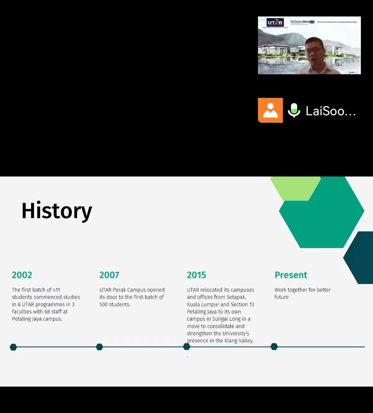 会上,伟德国际victor·1946源自副院长李刚简要介绍了bv1946伟德的办学情况及国际交流项目的开展需求,并希望双方能够结合各自学校优势,寻找合作切入点,进一步加强沟通,推动双方教育交流深入合作。拉曼大学国际处处长赖顺安介绍了拉曼大学的办学特色并重点分享了拉曼大学在疫情期间开展的国际教育交流活动,并对双方在未来的交流合作充满信心。最后双方就共同感兴趣的师生海外学历提升、硕士联合培养、交换生以及短期游学等项目进行了深入探讨。