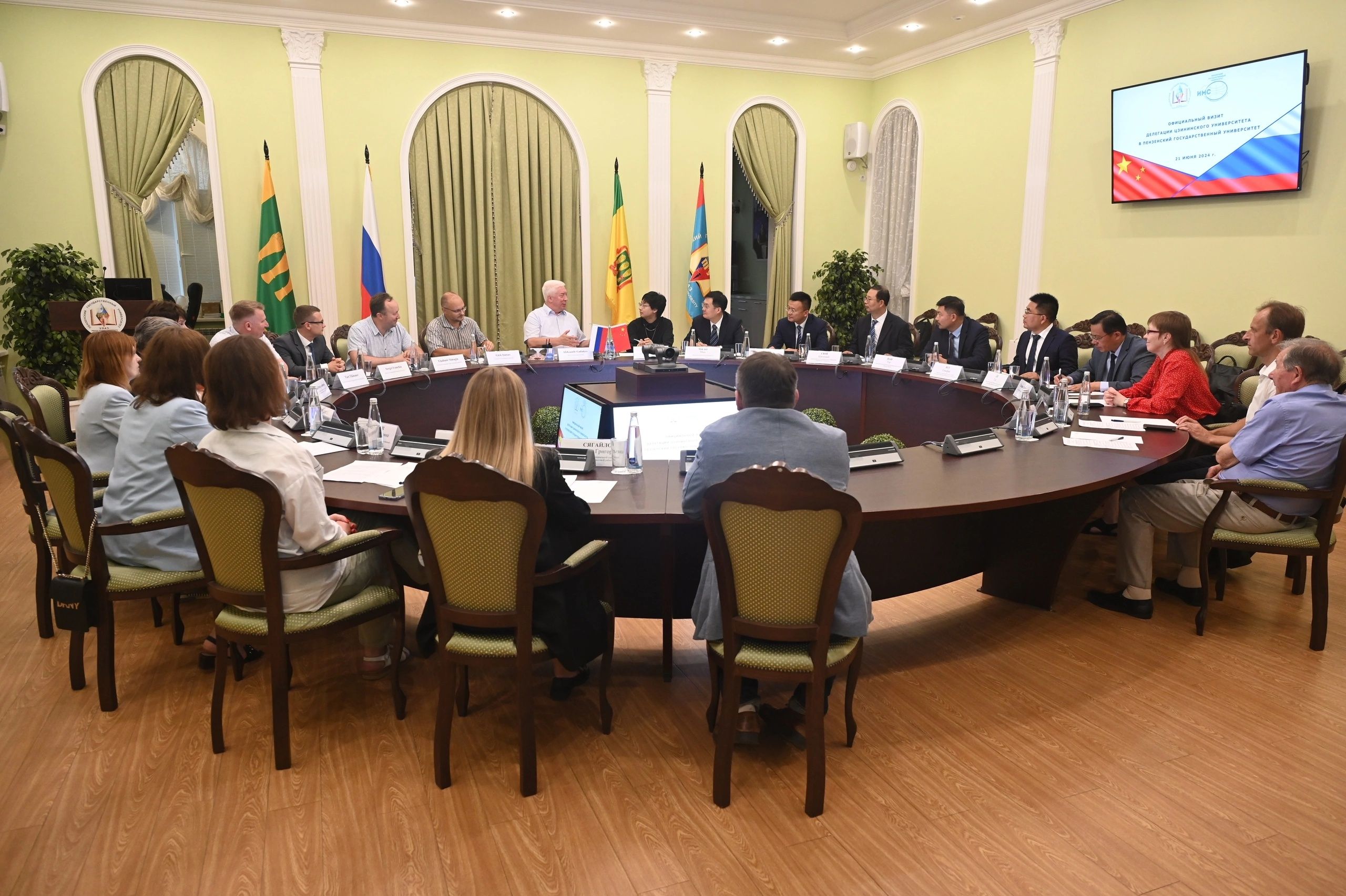访问俄罗斯奔萨国立大学期间,代表团与校长亚历山大·古利亚克夫、外事副校长辛佐夫•弗拉基米罗维奇、国际交流处、体育学院和理工学院相关负责人进行座谈。双方深入讨论了中外合作办学本科教育项目推进事宜,就师生短期交流、“2+1+2”专升本、“3+1+2”本升硕等项目达成合作意向。代表团参观了该校体育学院训练场馆、奔萨州体育中心和体育学校。