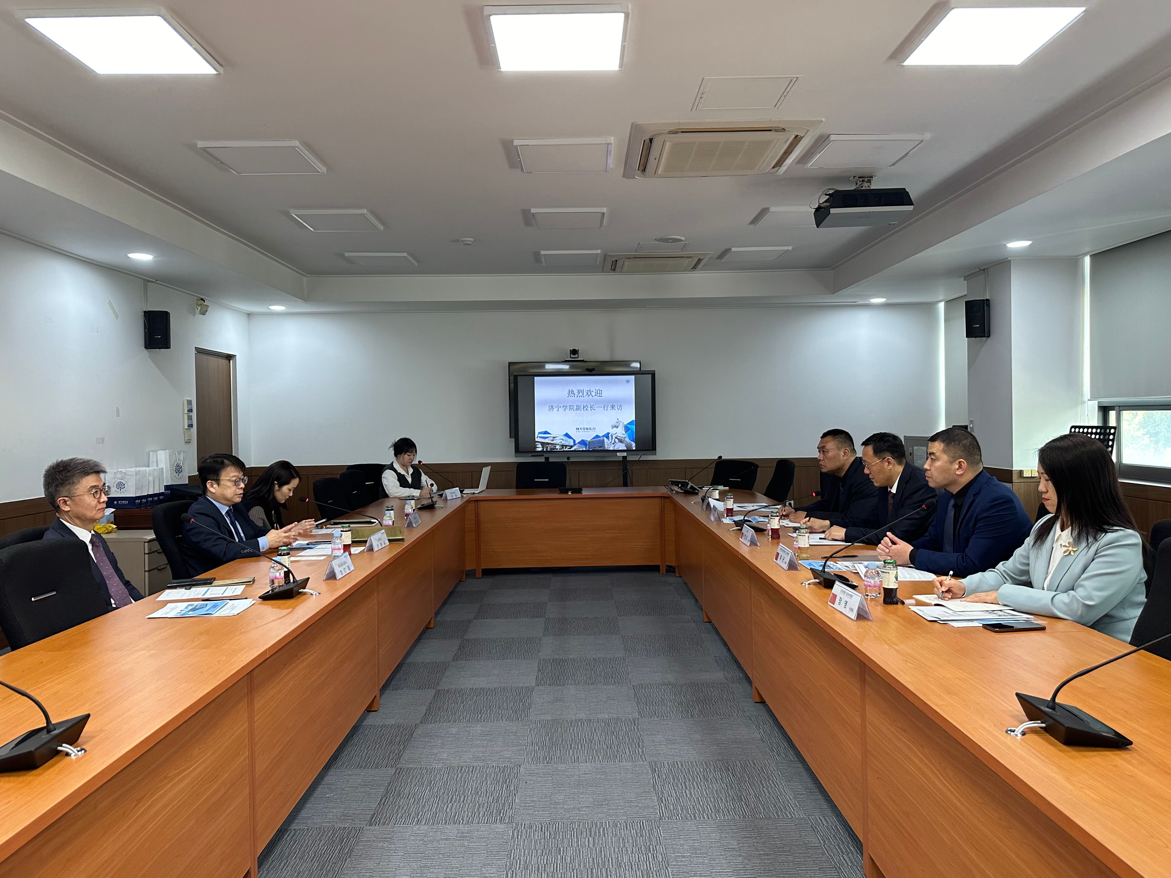 在韩国期间,代表团访问了明知大学,并与明知大学外事副校长尹鐘彬等人进行座谈。李凡路表示两校于2015年建立友好合作关系,有着良好的交流基础,希望双方能够继续加强合作、增进友谊。尹鐘彬介绍了明知大学的办学情况以及即将推进的2024冬季短期项目,并表达了推进双方合作的意愿。之后,代表团访问了韩国檀国大学,与研究生院院长李在董和国际处处长曹汉承等人进行座谈,就两校在不久前签署的国际本硕连读项目进行了深入交流。在韩国访问的最后一站是岭南大学,代表团与国际教育副校长及国际处相关人员进行座谈,就开展教师访学、联合培养、师生学历提升等问题进了探讨,并签署了友好框架协议。座谈后,访问团实地参观了校园、图书馆、博物馆等基础设施。