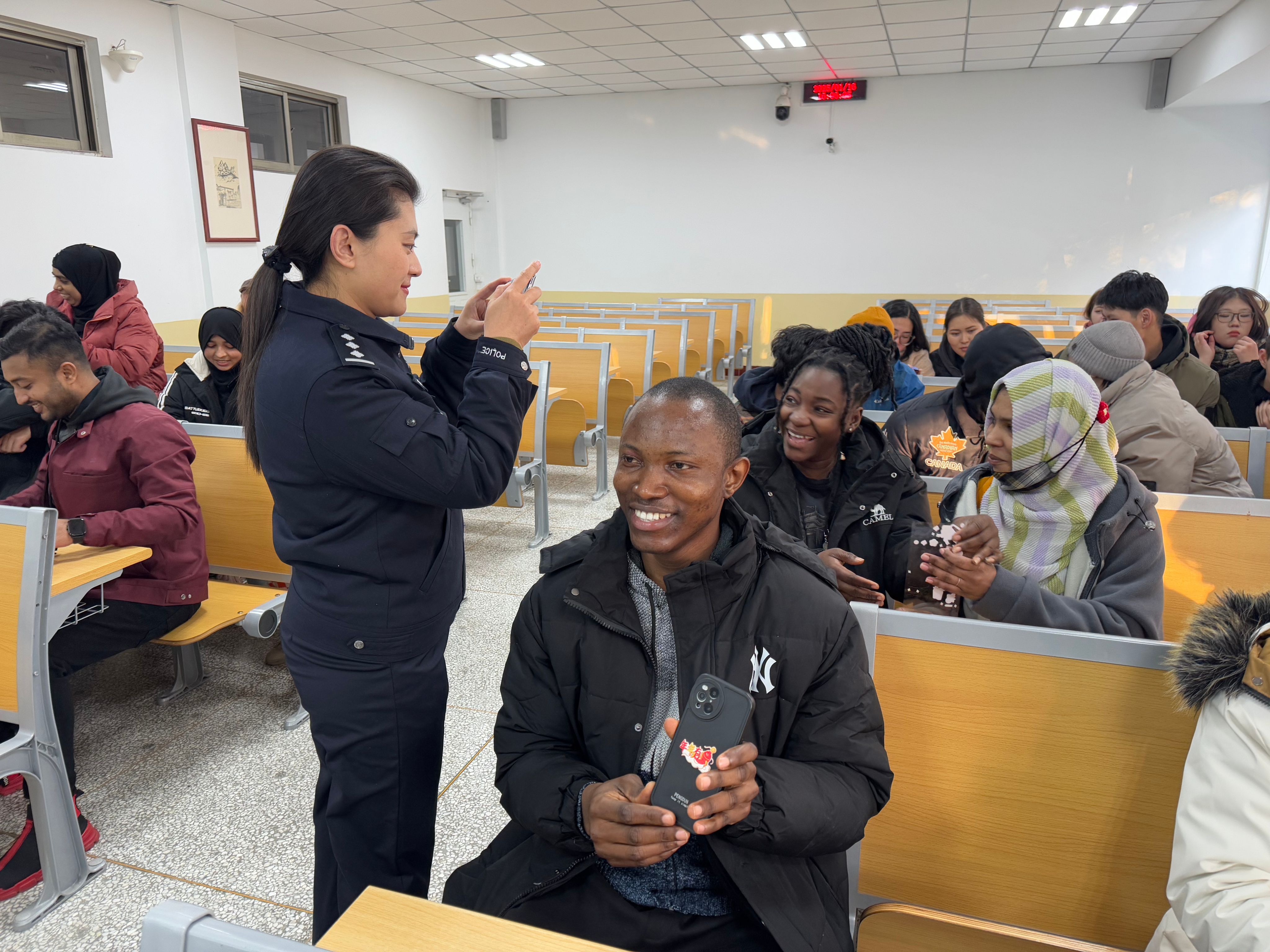 会上,伟德国际victor·1946源自副院长李刚在开场致辞中着重强调了此次会议的重要性,明确指出保障每一位留学生的假期安全是学校义不容辞的责任。随后,曲阜市公安局出入境管理大队外事管理副中队长王闻闻针对留学生按时办理签证和居留许可的义务、按时办理住宿登记、非法居留及其处罚、非法就业及其处罚、限期出境和驱逐出境、涉外单位的义务、留学生遵守学校规章制度与服从学校管理的义务等七个方面进行了细致讲解。曲阜市公安局出入境管理大队教导员孔华结合近期发生的实际案例,着重强调了交通安全、人身安全、财产安全、消防安全等相关事项。在互动答疑环节,现场气氛热烈,留学生们踊跃提问,涉及假期旅行安全、紧急情况处理等多个方面,民警和老师们均给予了耐心且专业的解答。