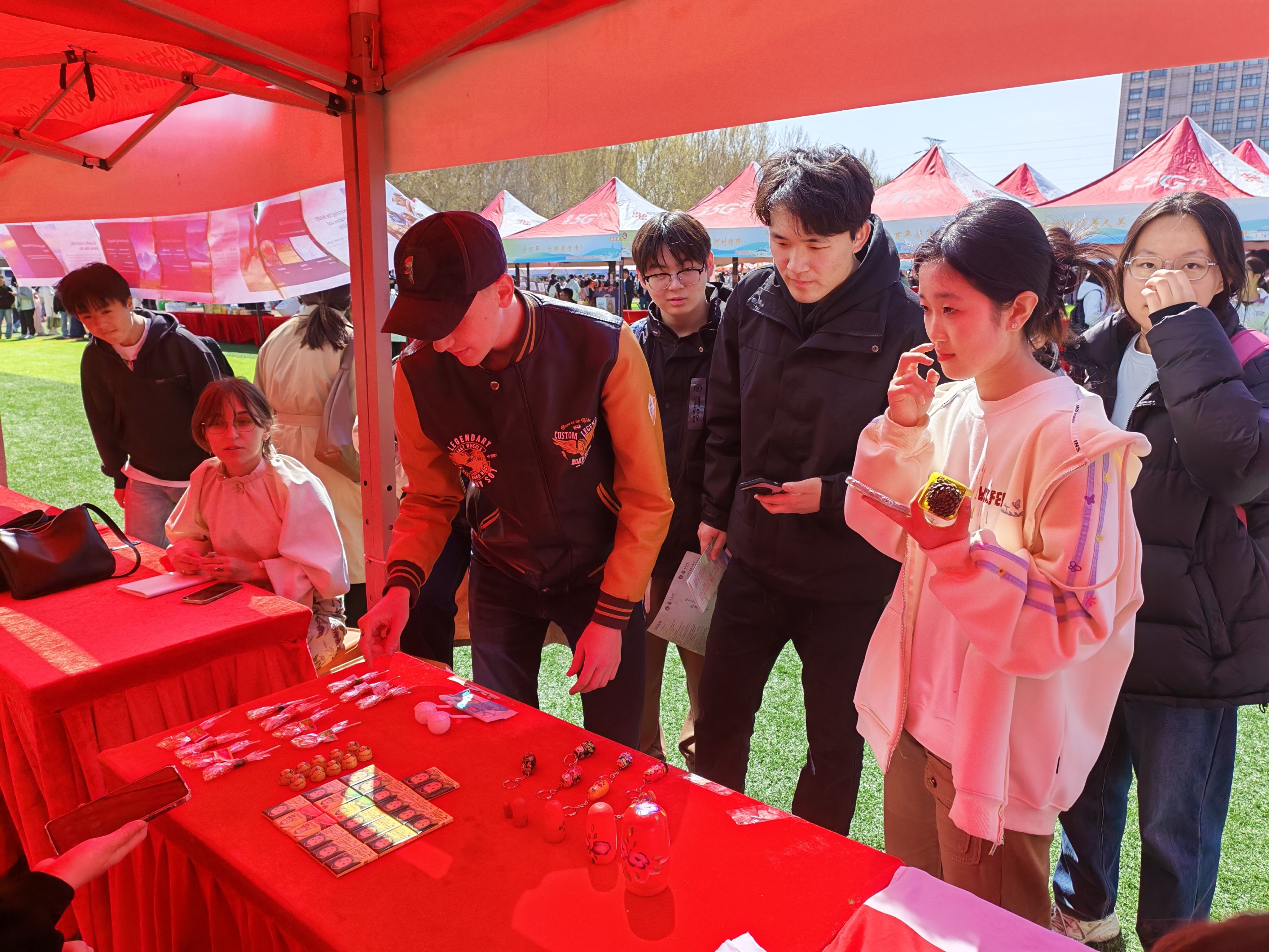 活动现场,留学生们在非遗工坊中沉浸式体验古筝弹奏、金石拓印、茶艺品鉴、葫芦手作、飞羽入壶等中华传统项目。同时留学生们化身“文化使者”,以极具民族特色的表演为春会注入国际元素。俄罗斯学生用踢踏舞的欢快节奏传递欧陆风情,非洲留学生以激昂的鼓点诠释热带活力,南亚传统舞蹈则带来异域艺术的灵动之美。活动现场,留学生们还通过服饰、手工艺品、美食等展示各国风土人情,吸引众多师生驻足交流。