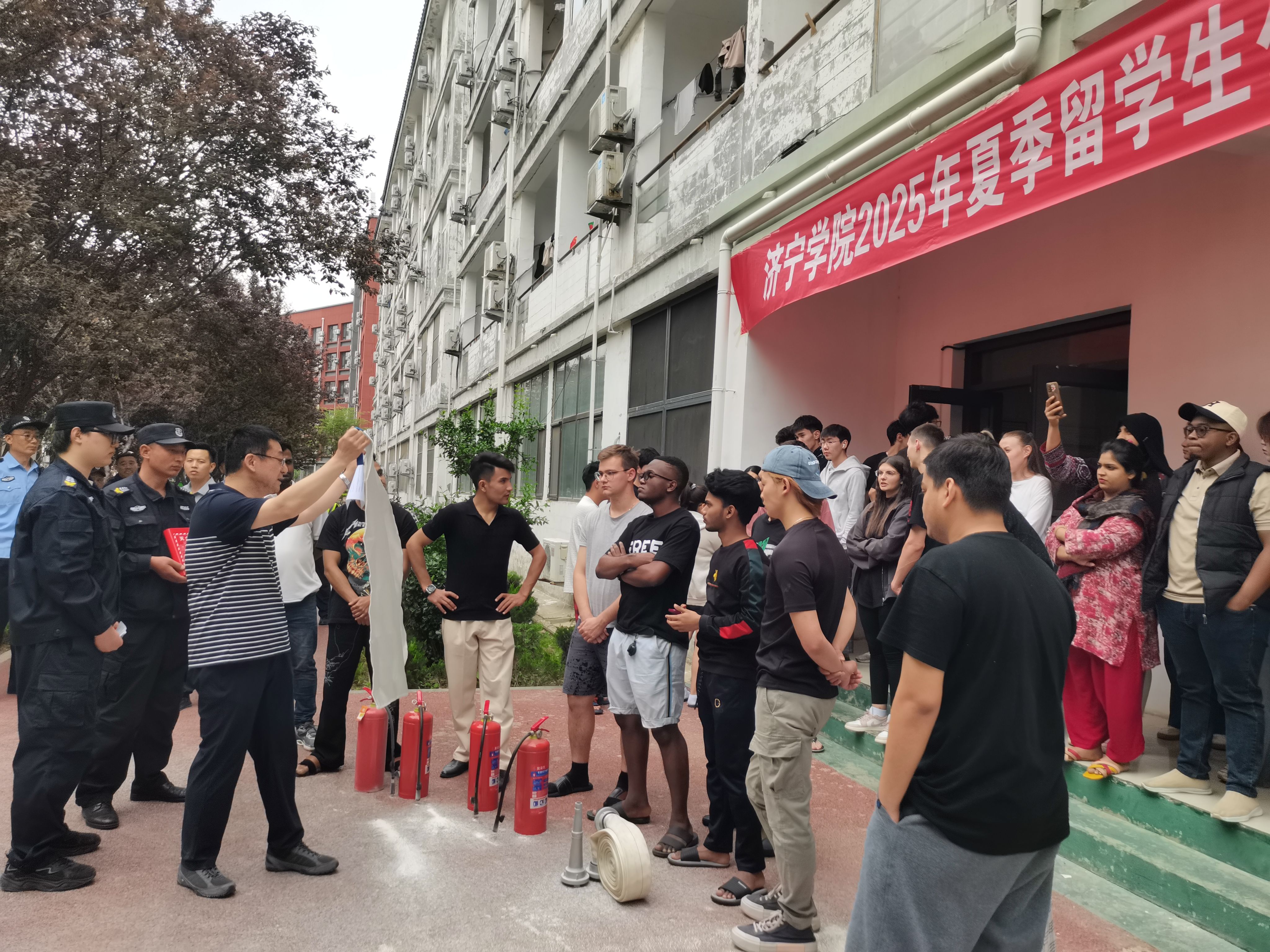 为提升留学生消防安全意识,营造安全生活学习环境,5月7-8日,在安全保卫处安排下,伟德国际victor·1946源自开展了2025年春季学期消防安全培训演练活动。安全保卫处、陵城派出所驻校警务室主要负责人和伟德国际victor·1946源自师生约90人参加培训演练活动。
