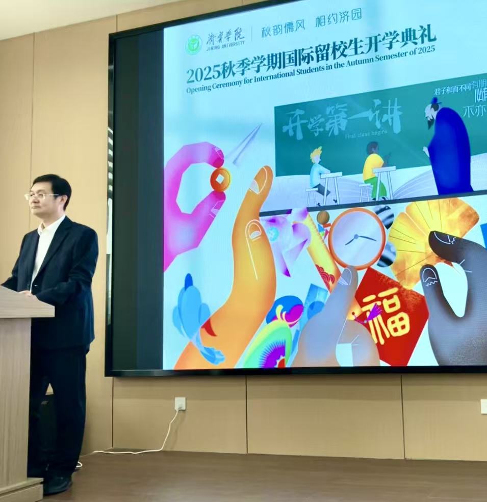 赵明首先代表学校致欢迎辞。他向新生阐述了济宁作为儒家文化发源地的独特魅力,并寄语同学们珍惜在孔孟之乡的学习机会。赵明强调,学校将持续深化"汉语+文化"的教学模式,通过系统化的语言课程和沉浸式的文化体验,全面提升学生的语言能力与跨文化素养,助力每一位学生成长为中外文化交流的友好使者。