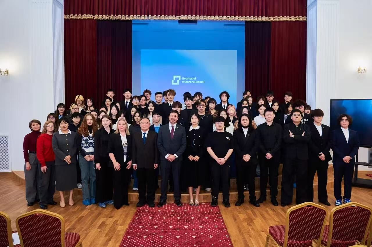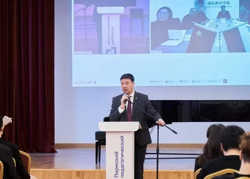 王清明在致辞中向彼尔姆国立人文师范大学对我校赴俄师生访学团、留学生给予的关心支持表示感谢。他指出,过去两年,双方持续深化师生互访、文化交流、学历提升等合作项目,校际交往日益密切,形成良性互动。希望两校以“中俄教育年”为契机,携手共建bv1946伟德“俄罗斯语言与文化中心”,与已在彼尔姆国立人文师范大学落地运行的“中国文化与汉语言中心”形成双向交融、常态互动的合作新格局。他同时寄语我校赴俄交流师生,珍惜学习机会,潜心钻研知识,用心传递友谊,力争学有所成、满载而归。